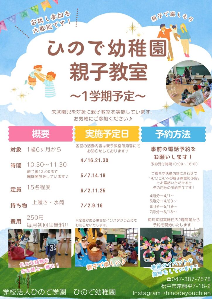令和8年度未就園のお友だち向け! 2026年3月16日 by ひので幼稚園 4月から令和8年度の親子教室が始まります! 今年度より毎月初回は無料となります。ぜひお試しで遊びに来てくださいね! ひので幼稚園の保育室と園庭を開放します!ぜひご自由に遊んで下さいね!