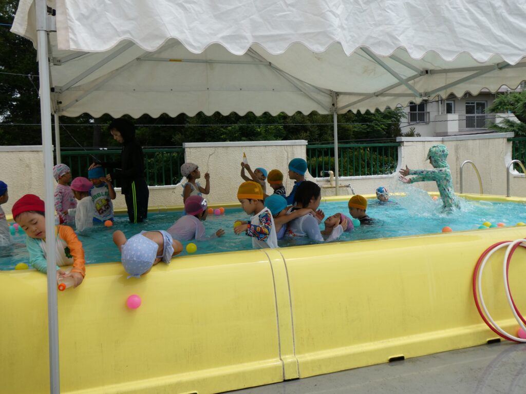 幼稚園の2階にはプールがあります。広々としたプールで暑い夏も元気いっぱいです!